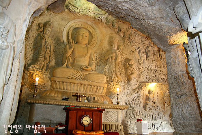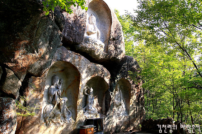 자연암반 곳곳에 돌을 정교하게 쪼아 불상들을 만들어 놓았다. 조성된지도 얼마되지 않았을 뿐더러 인공적인 요소가 가미가 되어 있어 전혀 자연과 어울리지 않을 것 같은 이 암자는 기이하게도 자연과 퍽이나 조화롭다. >