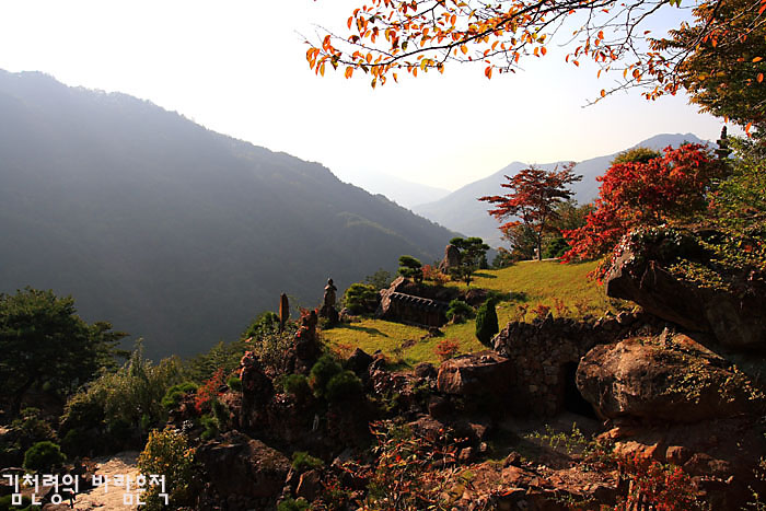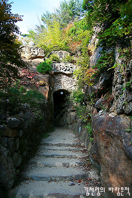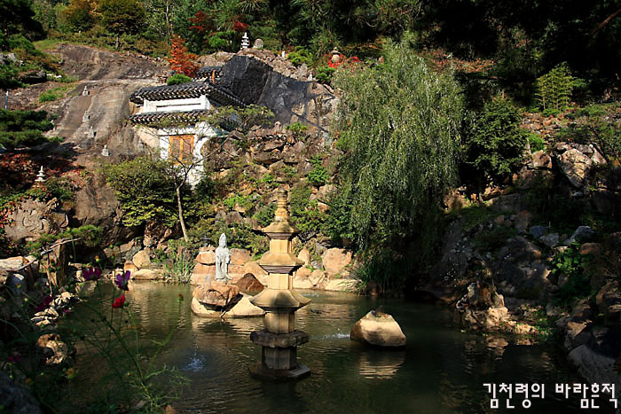 놀라움은 절집 입구의 사천왕상을 지나 '대방광문'을 지나면서부터 시작된다. 이 인공석굴을 지나면 하늘 위에 떠 있는 아름다운 정원이 본격?으로 펼쳐지기 때문이다.