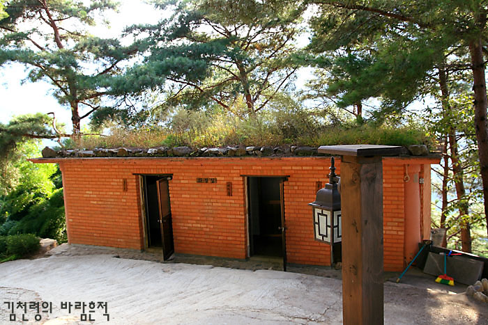 화장실이 현대적이다. 나무로 지은 해우소가 아니라 붉은 벽돌로 만들었다. 이 현대적인 화장실은 지붕 위의 풀들로 인해 전혀 낯설지가 않았다.