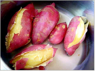 ■ 만성변비에 특효|고구마에 함유된 셀룰로오스와 식이섬유는 배설을 촉진하는 작용을 하므로 만성변비 환자에게 특히 권할만하다. 게다가 ‘세라핀’이라는 성분은 장(腸) 안을 청소하는 기능이 있어 대장암을 예방하는 효과도 있다.