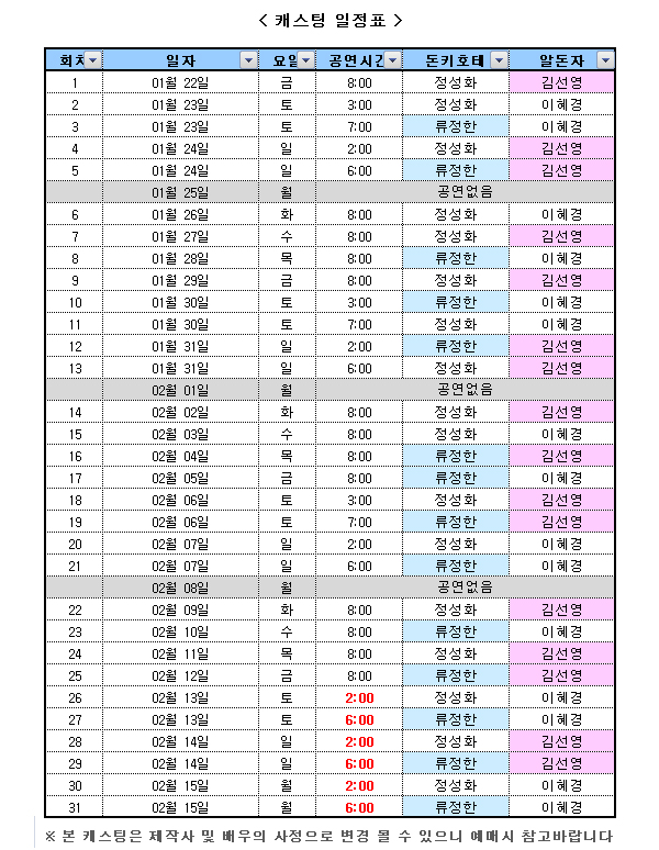 신청방법: 관람하고자 하는 공연게시판에 새글쓰기로 신청