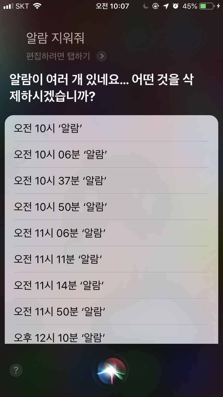 나 아침에 시리야 알람 다 꺼줘 하고 다시 자서 좆된적 많아ㅋㅋㅋㅋㅋㅋㅋㅋㅋㅋㅋㅋ