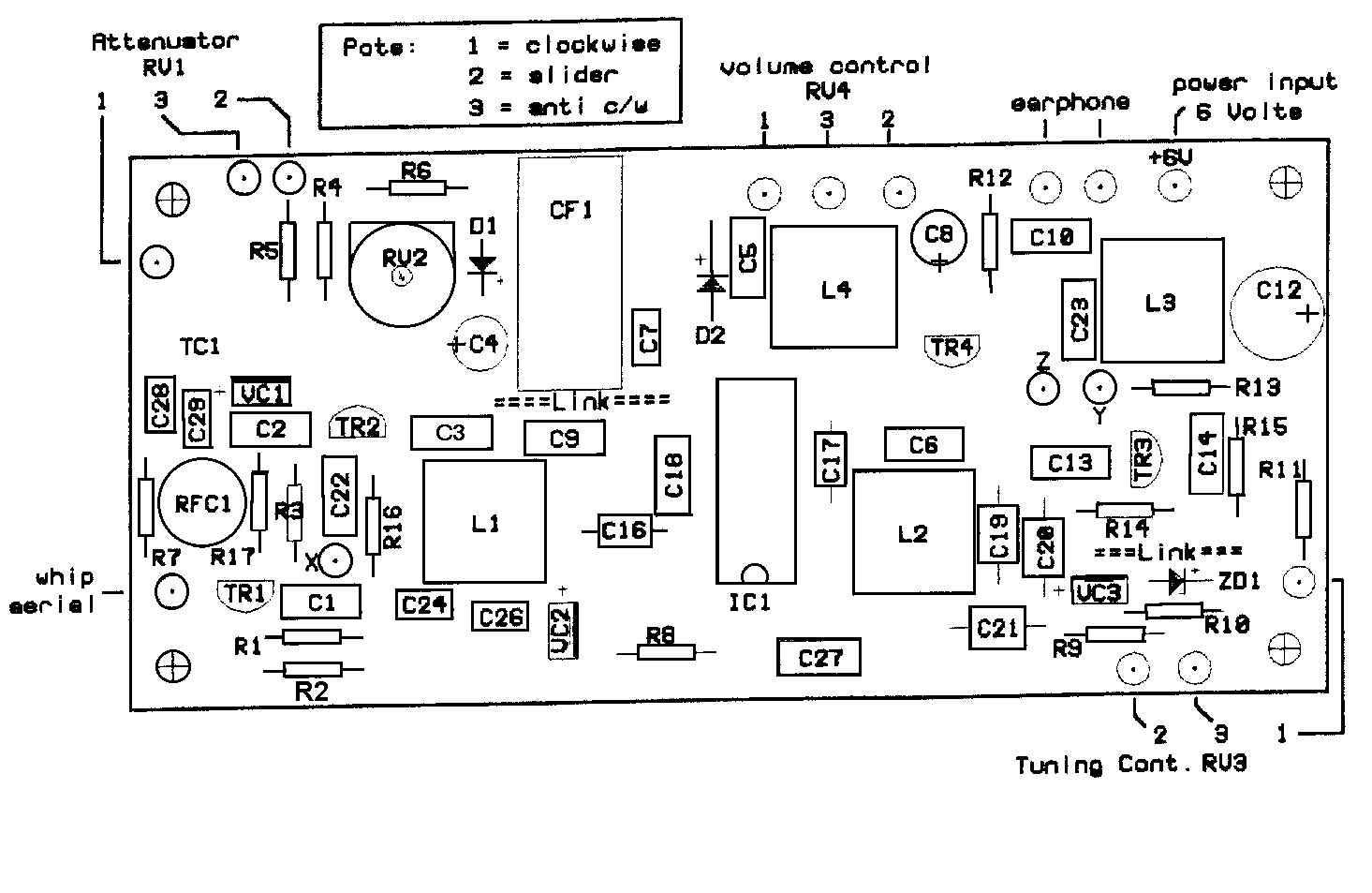 ( R1 and C29 are fitted on test. TR1, TR2 fitted after wiring up board. )
