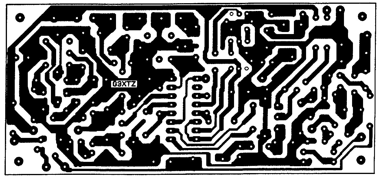 The receiver is built on a single-sided printed circuit board which measures 2 by 4.3 inches. The small size means that the board can be fitted into a wide variety of enclosures, which should be well screened. The main directional signal is picked up by a tuned ferrite rod (or loop) aerial and fed, via the R.F. attenuator (RV1) to a low-noise FET R.F. amplifier (TR2). A second FET R.F. stage (TR1) amplifies the signal from a vertical whip aerial and can be switched into circuit to give a heart-shape response so that the direction of received signal can be determined. This direction is not accurate, but serves to eliminate one of the two sharp null directions that the ferrite aerial provides.