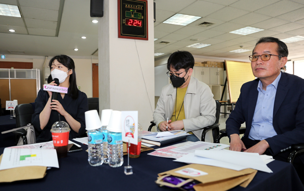 ▲ "선수들과 친하게 지내면서 이야기를 많이 하는 편이다. 팀 분위기가 승부에 영향을 미칠 수 있기 때문에 곤두서 있는 신경을 어떻게 완하시켜 줄 것인지를 고민한다. 조혜연 선수와는 처음으로 헤어지게 됐는데 새롭기도 하고 어색하기도 하다." (포스코케미칼 이영신 감독)