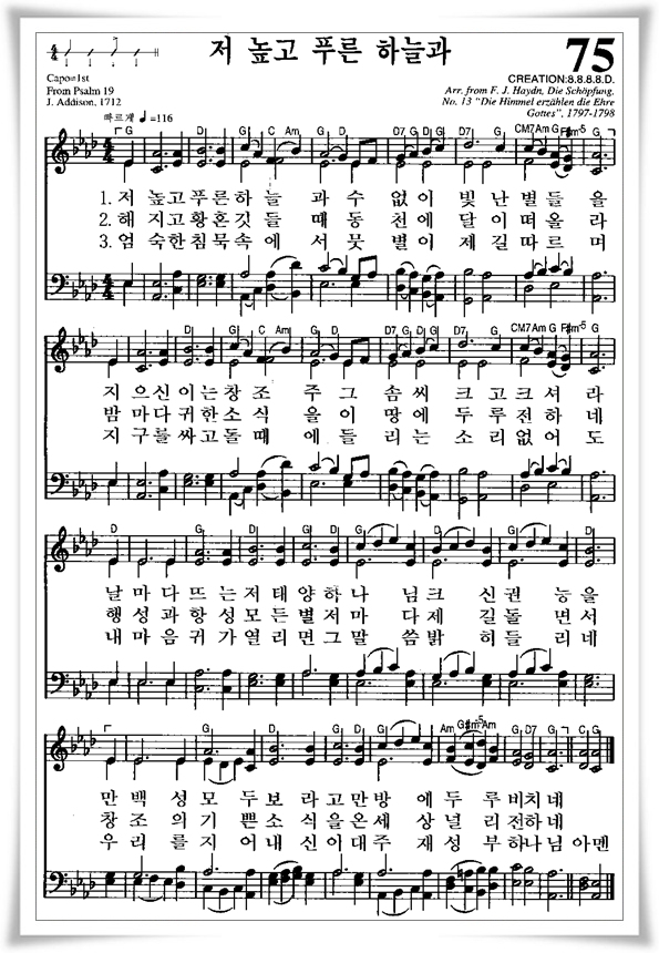 찬송가 75 장 - 저 높고 푸른 하늘과 [찬양*악보]