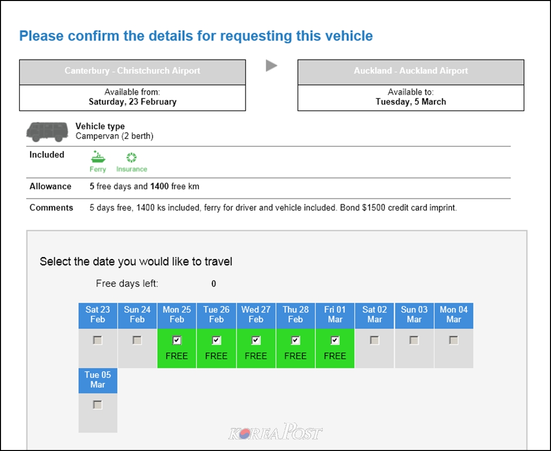 뉴질랜드에서 무료 렌탈카를 예약할 수 있는 사이트가 있습니다.