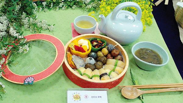 산과 들에서 자라는 제철 먹거리를 선택했으며, 장류, 짱아찌, 효소, 분말을 적절하게 혼합했다. 가족의 행복을 테마로 한 것이 특징. 음식은 당귀, 치자, 자초, 방풍잎, 머위, 취나물잎으로 만든 삼색 방울밥과 능이콩나물국, 인삼청국장샐러드, 방아꽃 연근전, 냉이김치, 질경이 장아찌, 방아잎차를 함께 선보였다.