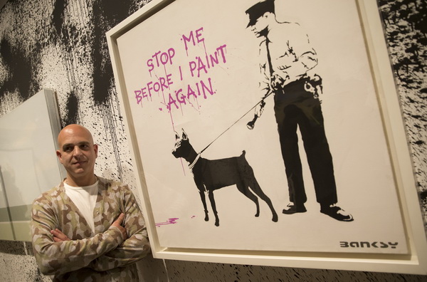 ○··· 프랑스 파리에서 25일(현지시간) 한 시민이 영국의 유명한 그래피티 작가 뱅크시가 최근 작업한 것으로 여겨지는 작품 앞을 지나가고 있다. 로이터 연합뉴스