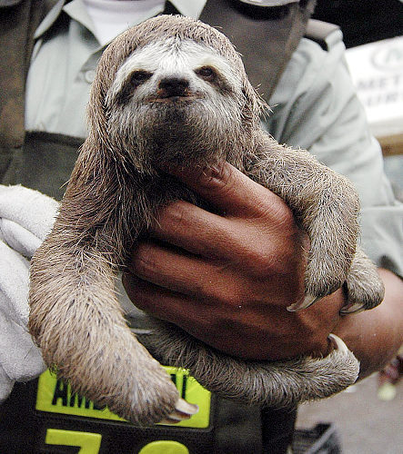 Sloths move very slowly and only when absolutely necessary. Their fur is a jungle in and of itself; Sloth fur plays host to two different kinds of moss. The moss gives the sloth an ugly coat but provides camouflage. (AP)