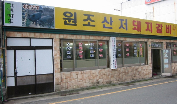 온천장 구 한독기술학교앞에 있는 돼지갈비집 산저집은 부산에서 가장 오래된 돼지갈비집중 하나이다.