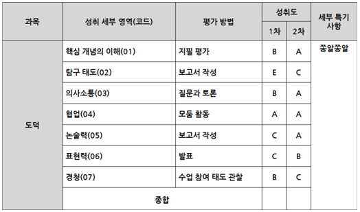 [표4] 개선된 성취평가제의 평가 및 학생부 기록 내용 예시