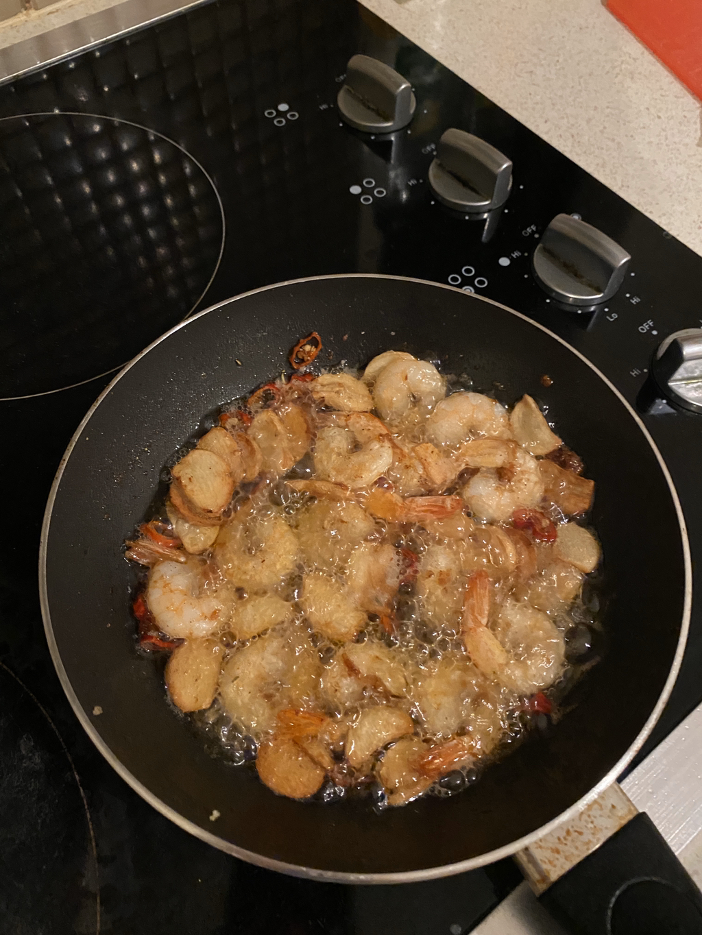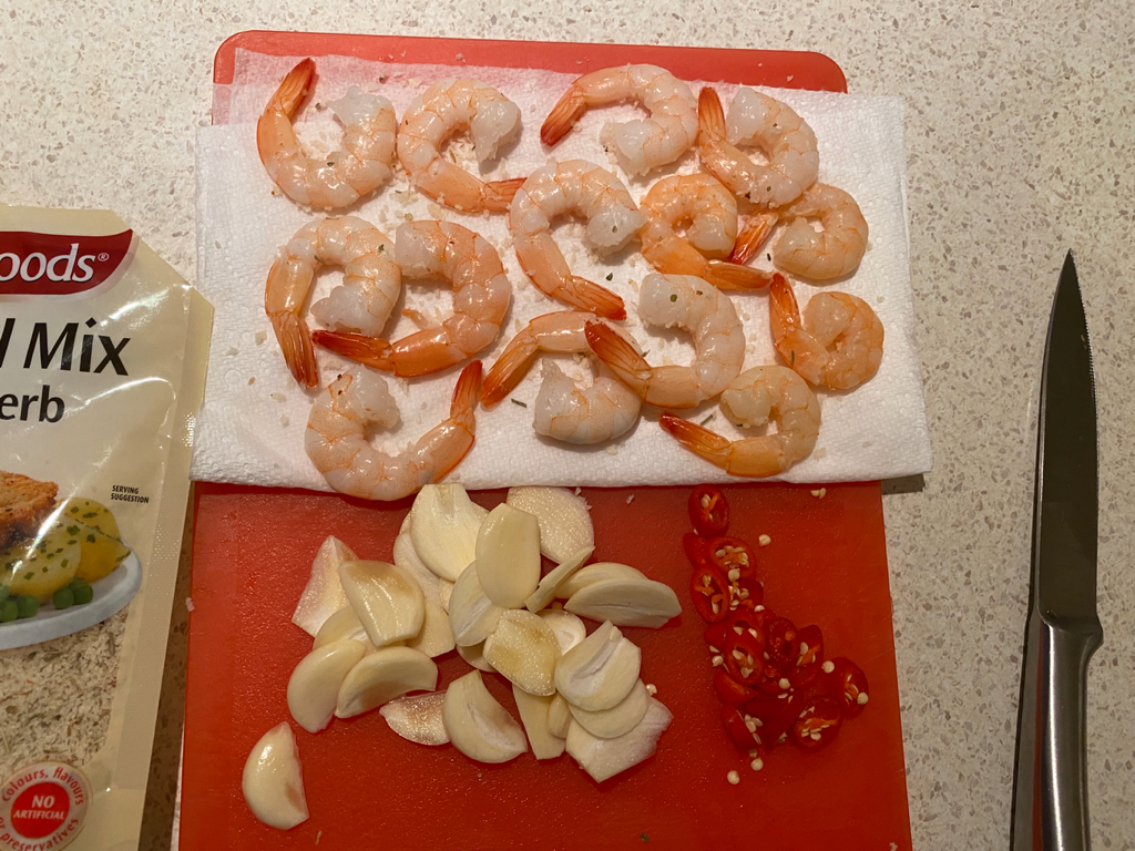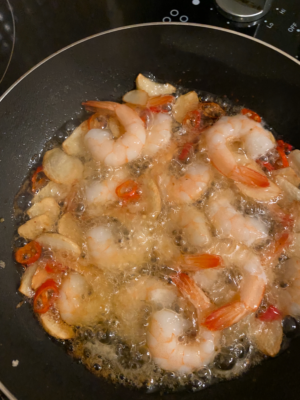 그리고 마늘이 색이 변하면 그 때 새우를 넣어줘