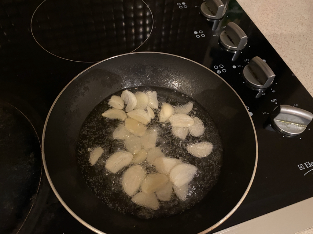 무조건 약중불에 들들 볶은 기름에 마늘 투하