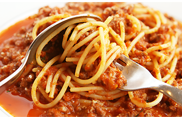 스파게티는 포크와 스푼을 동시에 사용해 면을 돌돌말아 먹을 수 있다. | |