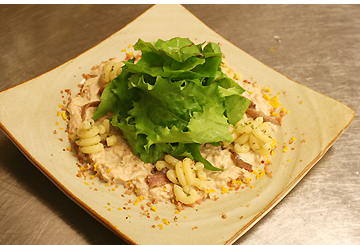 삶은 마카로니는 버섯, 야채류를 곁들인 뒤 마요네즈나 토마토 소스를 버무려 샐러드를 만들 수 있다. | |