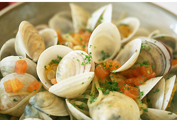 신선한 조개는 봉골레 파스타의 맛을 좌우한다. 조개 조리 과정에서 중요한 것이 해감인데 바닷물의 염도를 유지하며 어두운 곳에서 해감 하는 것이 중요하다. | |