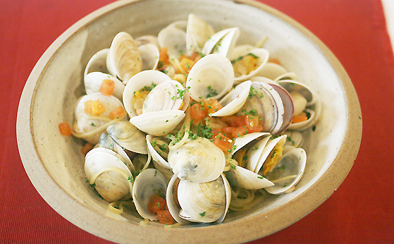 그 다음에는 화이트 와인을 넣고 조개를 볶다 입이 벌어지는 순간 면과 함께 볶아낸다. 화이트 와인을 넉넉히 뿌려줘야만 조개 안으로 와인이 들어와 육즙이 흥건하게 베어 나온다. 너무 오래 조리하지 않는 것도 맛의 포인트. 조개를 너무 삶으면 질겨지고 맛이 너무 진해져 전체적으로 느끼한 맛을 만들어 내기 때문이다. 좀 더 깔끔하고 깨끗한 맛을 위해서라면 파스타용 고추를 넣고 먹으면 된다.