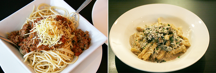 긴 파스타를 사용해 만든 미트볼 스파게티(좌) 버섯 링귀네(우)