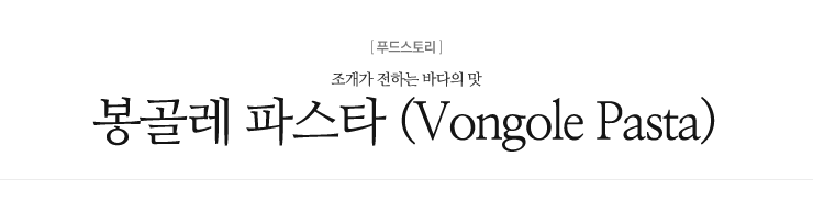 해안지역인 베네치아 지방에서 유명한 봉골레 파스타는 바지락, 모시조개, 백합 등 주 재료인 조개에서 느껴지듯이 바다와 잘 어울리는 파스타이다. |