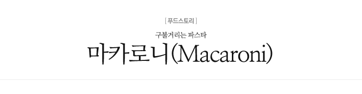 이탈리안 파스타는 우리에게 친근한 스파게티를 비롯해 일일이 열거할 수 없을 정도로 종류가 많다. 이렇게 수많은 종류의 파스타들은 제각기 모양과 어울리는 이름과 재미난 사연들을 지니고 있다. 파스타는 생긴 모양에 따라 그리고 재료에 따라 부르는 이름도 다양하기 때문이다. 그중에서도 얇고 긴 튜브를 잘라 놓은 것 같은 모습의 구불거리는 마카로니(Macaroni)는 우리에게는 약간 생소하지만 이탈리아 사람들의 식탁에서 자주 찾아 볼 수 있는 인기 파스타이다.