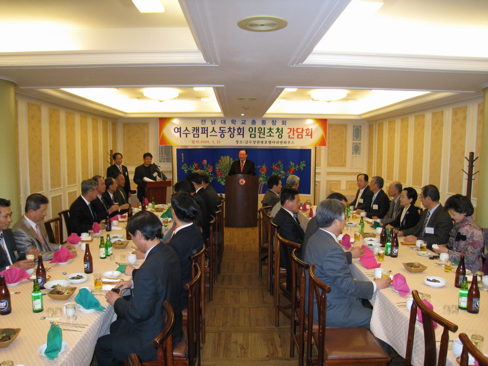 지난 3월 21일 금수장 아리랑하우스에서는 김국웅 총동창회장의 초청으로 정준호 여수캠퍼스 총동창회장을 비롯한 여수캠퍼스총동창회 임원, 모교 강정채 총장과 박찬국 부총장을 비롯한 보직교수 등 40여명이 참석한 가운데 양 캠퍼스 동창회의 화합과 모교의 발전을 기원하는 자리가 마련되었다.