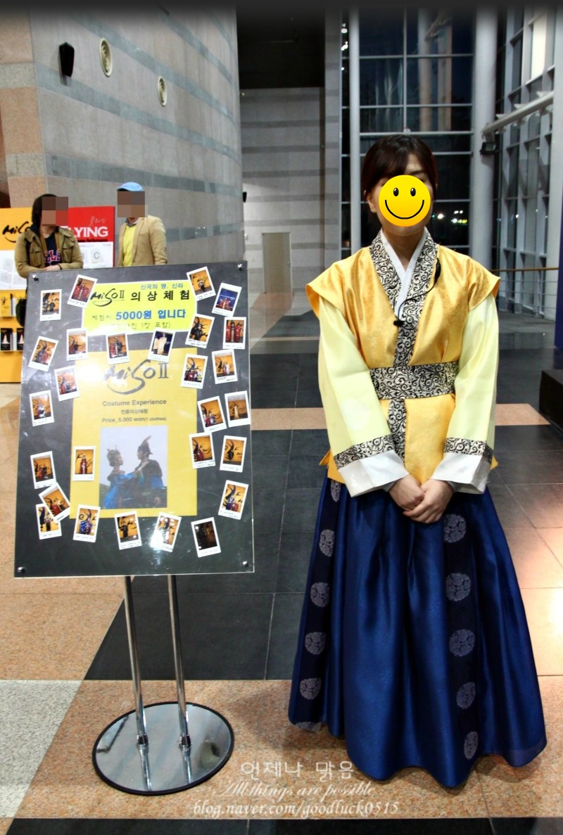 티켓 받아들고 공연보러 들어가는데 입구쪽에 의상체험 할 수 있는 공간도 있더라고요
