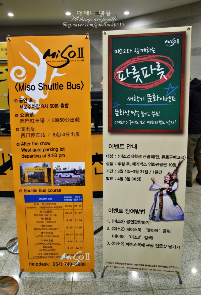 저기 보이는 플라잉 공연과 정동극장의 경주 브랜드공연인 미소2 공연을 모두 볼수 있었는데