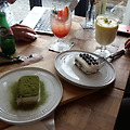 기사를 막아야 하는 내 사정을 살펴 '카페 제주 명월'에 갔다. 서귀포 쪽에서 중산간도로 타는 길목에 있었다. 널찍한 공장 건물같은 곳인데 아늑하고 호젓한 분위기가 발길 깨나 붙들어매는 모양이었다. 티라미슈 둘을 시켜 각자 자몽 쥬스 등을 마셨지만 난 마감에 쫓겨 기사 쓰느라 건성건성 대충이었다. 일행이 권해 티라미슈를 두 스푼 정도 떠먹었는데 상당히 가벼우면서도 풍미가 있었다.