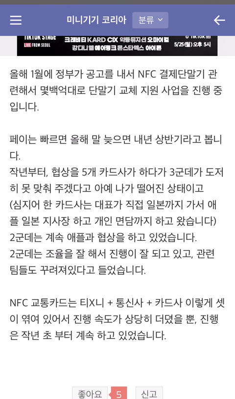 (올해 1월 정부가 공고를 내서 NFC 결제단말기 관련해서 몇백억대로 단말기 교체 지원 사업을 진행 중)