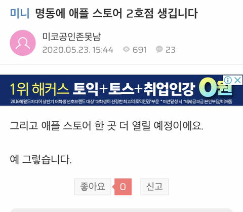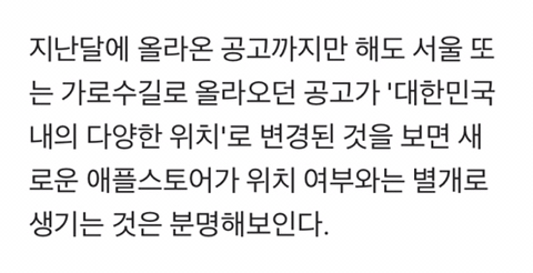 2021년 명동 애플스토어 2호점 예정 (5월18일 채용공고 뜸)