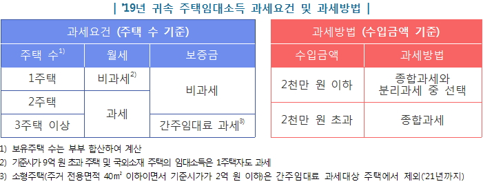 * 주택임대외 종합소득금액이 2천만원이하인 경우 적용 | * (좌 동) |