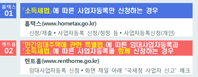 ※ 구청에서 임대사업자등록하면 동시에 세무서에 사업자등록 신청 됨.