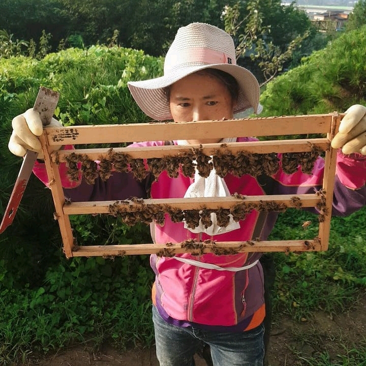 2. 벌들이 타올을 씹어 믈어 뜯어 벌통 내부 및 소문 앞이 지저분하다.