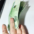 돈이 여러장 겹치는부분에 왼손은 엄지를 올리고 오른손은 엄지는 위로올리고 나머지손은 지지대로 돈밑에깔아! 자세는 완벽!