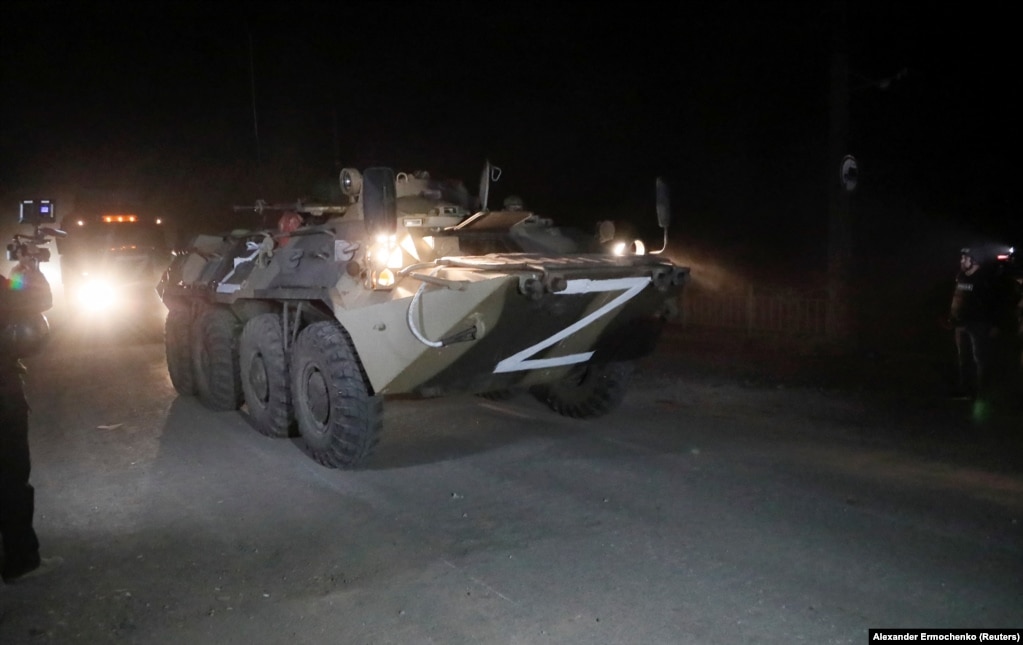 1. A convoy of Kremlin-backed separatists escorts buses transporting Ukrainian soldiers from the besieged Azovstal steel plant in Mariupol late on May 16. Deputy Defense Minister Hanna Malyar said 53 badly wounded soldiers were taken to a hospital in separatist-held Novoazovsk, while another 211 were evacuated through a humanitarian corridor to another site.