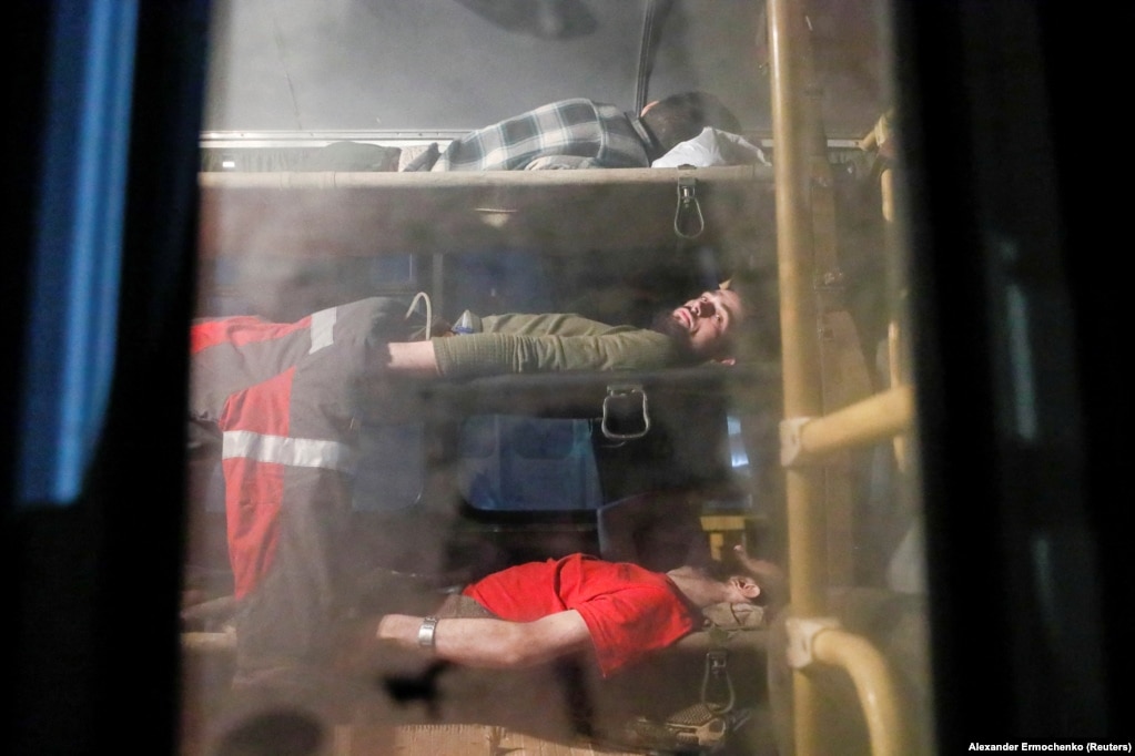 10. A video released by the Russian Defense Ministry shows a wounded Ukrainian soldier receiving treatment in a bus after being evacuated from the Azovstal steel plant.