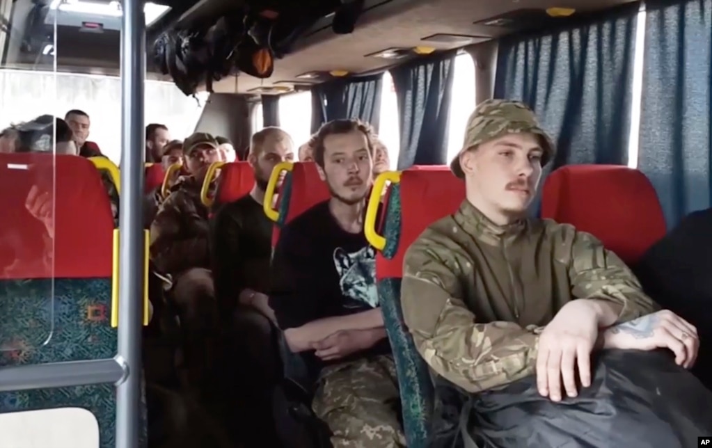 11. A video released from the Russian Defense Ministry shows Ukrainian servicemen waiting in a bus after their surrender. The Ukrainian government said it was continuing efforts to complete what it called was the evacuation of its fighters from the Azovstal steel plant. It was the last holdout in the southern port city of Mariupol, after around 260 soldiers, some of them wounded, were able to get out of the sprawling complex.