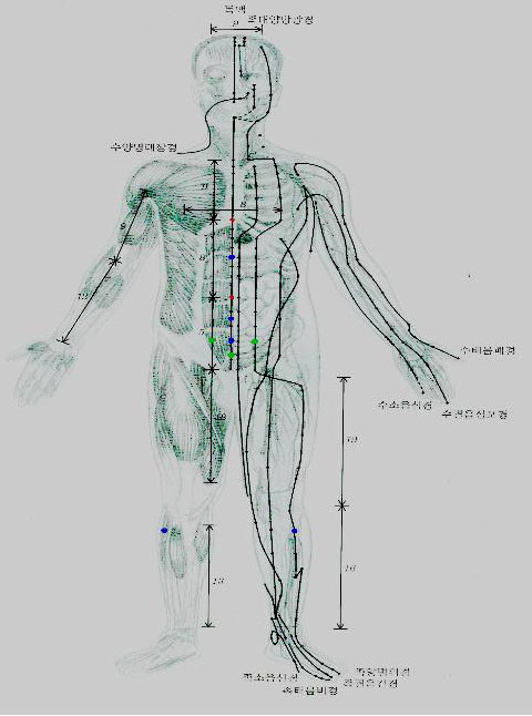 인체 내에는 기맥이 순환하는 14경락이 있고, 14경락의 생리적요소마다 기혈의 동정과 명맥을 조절하여, 의 건강을 유지할 수 있는 365개의 경혈이 있습니다. 따라서 우리는 365개의 혈중에서 가장 중요한 경혈 30여혈을 표시하고, 통증이 느껴지는 부위에 변화된 환부의 기혈을 온보생신 하고, 뜸을 떠서 인체의 양기를 보양함으로서, 병도 고치고 수명도 연장하려 함입니다. (편작뜸법)