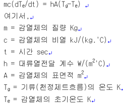 위의 식은, dte/dt = hA(Tg-Te)/mc 로 바꿀수 있는데, 이식은 다음을 의미합니다.