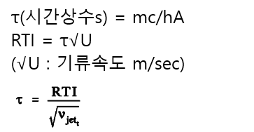 즉 h에 기류의 제곱근을 곱한값이 거의 일정하기 때문에, 위와 같은 개념을 도입하게 되며, 시간상수를 통해 RTI를 정의하게 됩니다.