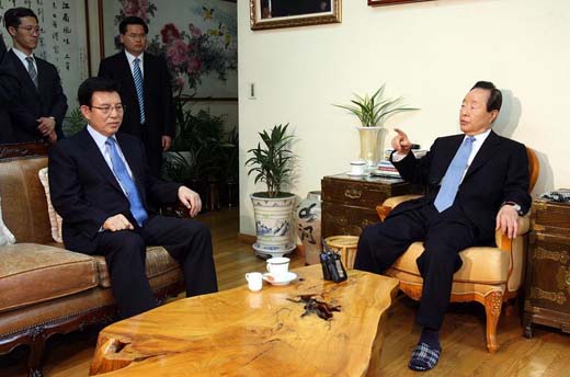 ★...22일 서울 상도동 김영삼 전 대통령 자택에서 한나라당 김덕룡 의원이 오찬에 앞서 김 전 대통령과 공천탈락관련 얘기를 나누고 있다./연합뉴스 ▒▒☞[출처]조선일보 |