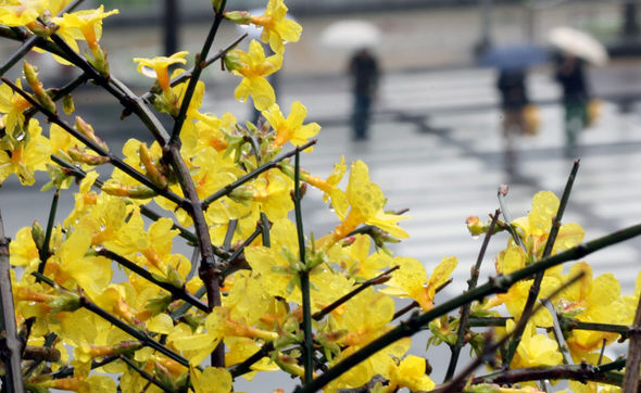 ★...온 나라에 촉촉한 봄비가 내린 23일 오후, 서울 마포구에 봄의 전령사인 개나리가 피어 단비를 흠뻑 머금고 있다. 기상청은 “주중에도 기압골의 영향을 받아 한두 차례 비가 오겠지만, 주말에는 날씨가 개면서 완연한 봄을 느낄 수 있겠다”고 전했다. 이종근 기자 ▒▒☞[출처]한겨레 |