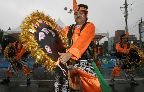 ★...안산 외국인주민센터 개소식이 열린 23일 오후 경기 안산 단원구 원곡동 행사장에서 한국에 살고 있는 인도네시아인들이 개소식을 축하하며 전통춤을 추고 있다. 외국인주민센터는 연중무휴로 이주노동자들에게 안산시민과 같은 수준의 행정서비스를 제공할 계획이다. 박종식 기자 ▒▒☞[출처]한겨레 |