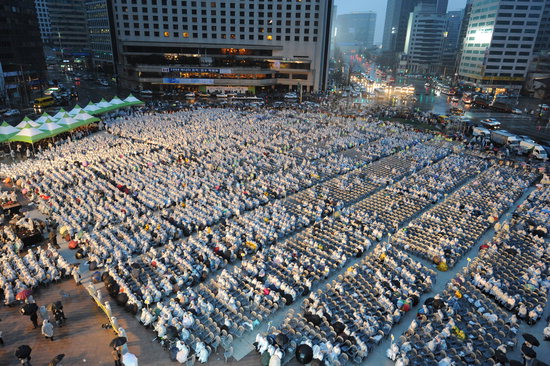 ★...23일 새벽 서울시청 앞 광장에서 열린 기독교 부활절 연합예배에 2만여명의 신자들이 참석해 예배를 하고 있다.〈 정지윤기자 〉 ▒▒☞[출처]경향신문 |