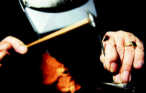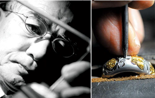 ★...전통 귀금속 공예의 맥에 생명을 불어 넣고 있는 이정훈옹. 혼이 담긴 작품 제작에 여념이 없는 그는 스무살 청년의 기세이다.(왼쪽 사진) 은가락지에 전통 문양을 새기는 작업은 정교한 손길을 필요로 한다. 은 위에 금을 얹어 모양을 내는 ‘누금기법’은 수천년을 이어온 우리의 전통 기술이다.(오른쪽 사진) ▒▒☞[출처]경향신문 |