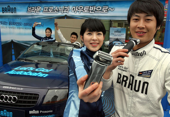 ★...독일가전 브라운은 23일서울시 동대문구 홈플러스 앞에서 '음파면도기 프로소닉 고객행사'를 진행했다. 음파의 진동으로 세밀한 면도를 가능하게 해주는 '프로소닉'은 3가지 모델이 있으며 가격은 20-30만원. 한국P&G는 5월18일까지 '프로소닉' 구매 고객 20여명에게 독일 브라운공장 등을 견학할 수 있는 기회를 제공한다고 밝혔다. (서울=연합뉴스) ▒▒☞[출처]한국경제 |