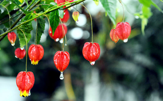 ★...봄비가 내린 23일 서울 구파발 화훼단지 길가에 전시돼 있는 청사초롱꽃에 빗물이 알알이 맺혀 있다. /김병언 기자 ▒▒☞[출처]한국경제 |