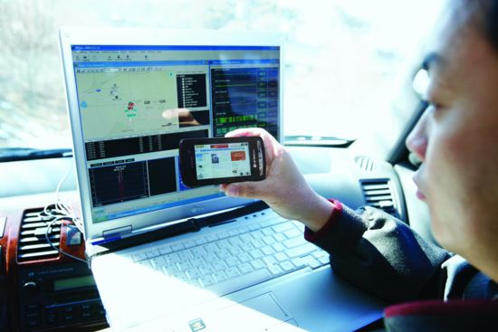 ★...LG텔레콤 원주네트워크운영센터 직원이 3.5세대 이동통신 리비전A망에서 휴대폰으로 인터넷을 접속하는 모바일인터넷 서비스를 테스트하고 있다. LG텔레콤은 최근 전국 읍ㆍ면 단위까지 4900여개 리비전A 기지국을 구축,다음달 초 3.5세대 서비스를 시작한다 ▒▒☞[출처]한국경제 |