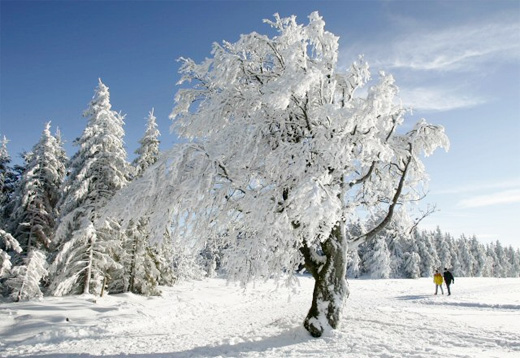 ▲ 산책자들이 18일 독일 남부 검은 숲 지역의 샤우인슬란트 산에서 설경속을 거닐고 있다. /AP 연합